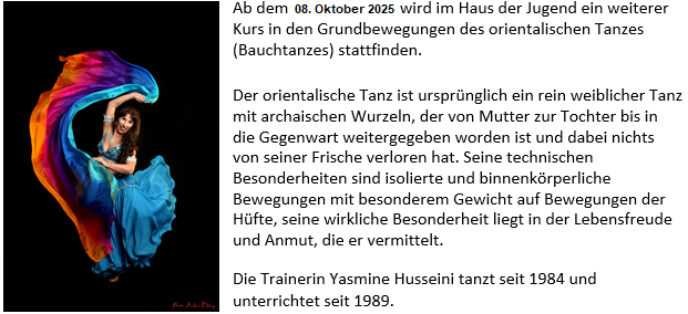 Verwendungszweck: Orientalischer Tanz Oktober 2025 und Name des Teilnehmers.